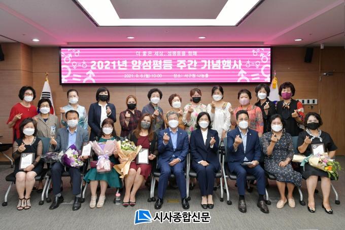 ÀÌ ÀÚ¸®¿¡¼´Â ±×µ¿¾È ¼ºÂ÷º°À» °³¼±ÇÏ°í ¾ç¼ºÆòµî »çȸ ½ÇÇöÀ» À§ÇØ ³ë·ÂÇØ ¿Â À¯°øÀÚ 4¸í¿¡ ´ëÇÑ ½Ã»ó½Äµµ °¡Á³´Ù. ÀÌ¿Í ÇÔ²² ±¸Ã» 1Ãþ ·Îºñ¿¡¼´Â ¼ºÆø·Â ¿¹¹æ ÆÐ³ÎÀ» Àü½ÃÇÏ´Â ºÎ´ëÇà»çµµ ÁøÇàÇß´Ù.