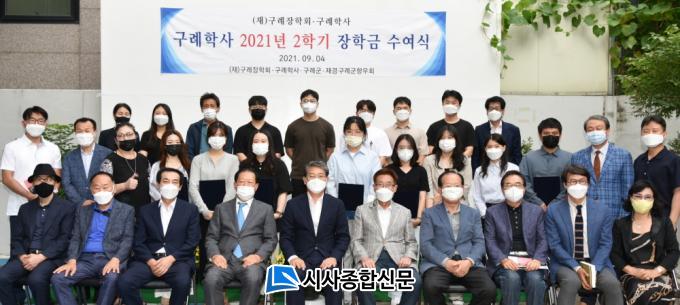 Çлç ÀÔ»ç»ý 24¸í¿¡°Ô ÃÑ 2õ¸¸¿øÀÇ ÀåÇбÝÀÌ ¼ö¿©µÆ´Ù. ±è¼øÈ£ ±¸·Ê±º¼ö, ±¸·ÊÀåÇÐȸ ÀÌ»ç, Àç°æ±¸·Ê±ºÇâ¿ì µî 20¿© ¸íÀÌ Âü¼®ÇØ ÀåÇбÝÀ» Àü´ÞÇϰí ÀÔ»ç»ýÀ» °Ý·ÁÇß´Ù.