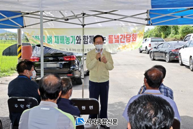 ¼Û±Í±Ù ±º¼ö´Â Áö³´Þ 30ÀÏ º ¼Ò½Ä(µå¹®¸ð)Àç¹è³ó°¡ ¹æ¹®¿¡ À̾î À̹ø¿¡´Â µÎ¿ø¸é dz·ù¸®¿¡ À§Ä¡ÇÑ Ä£È¯°æ(À¯±â³ó)Àç¹è´ÜÁö(42ha/20È£)¿¡¼ µé³è °£´ãȸ¸¦ °®°í ģȯ°æ ³ó»ê¹° Àç¹èÀÇ ¾î·Á¿ò°ú Á߿伺À» ´Ù °°ÀÌ ÀνÄÇϰí Àç¹è³ó°¡ÀÇ ÀǰßÀ» ³ó¾÷Á¤Ã¥¿¡ ¹Ý¿µÇÏ´Â ¼ÒÅëÇàÁ¤ÀÇ ÀåÀÌ µÇ¾ú´Ù