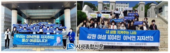 ÀÌ¿¡ ¾Õ¼ 9ÀÏ ¿ÀÈÄ ¡®À̳«¿¬ È常¦ ÁöÁöÇÏ´Â ¿ï»ê±¤¿ª½Ã ¿©¼º°è Àϵ¿ 1401ÀΡ¯µµ ¿ï»ê±¤¿ª½Ãû ¾Õ¿¡¼ ¡°¿©¼ºÀÇ »îÀ» ÁöÄÑÁÙ ¼ö ÀÖ´Â ¹ÎÁÖ´ç 4¹øÂ° ´ëÅë·ÉÀ¸·Î À̳«¿¬ È常¦ Àû±Ø ÁöÁöÇÑ´Ù´Â ¼±¾ð¹®À» ¹ßÇ¥Çß´Ù.