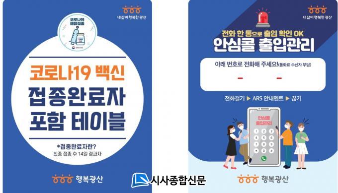 ±¤»ê±¸°¡ Á¦ÀÛÇÑ ¾È³»ÆÇ¿¡´Â ¡®Äڷγª19 ¹é½Å Á¢Á¾¿Ï·áÀÚ Æ÷ÇÔ Å×ÀÌºí¡¯À̶õ ¹®±¸¿Í ÇÔ²² ¡®±¤»ê±¸ ¾È½ÉÄÝ¡¯ ¹øÈ£¸¦ ±âÀçÇÒ ¼ö ÀÖ´Â ºÎºÐÀÌ º°µµ·Î ¸¶·ÃµÆ´Ù.