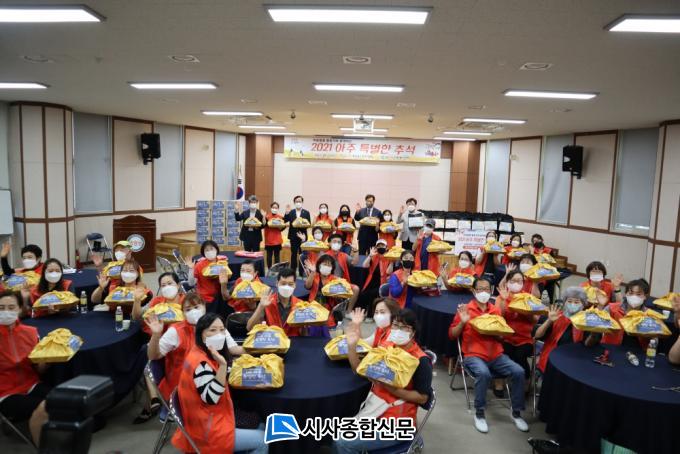 À̳¯ Çà»ç´Â Äڷγª19 È®»ê ¹æÁö¸¦ À§ÇØ ¿ì»êµ¿, ½Å°¡µ¿ Ä·ÇÁ¿¡¼ À½½ÄÀ» ¸¸µé°í ¼¾ÅÍ °´ç¿¡¼ ¼ÛÆí, Àü, ¾à¹ä, À¯°ú, °úÀÏ µîÀ» ³ÖÀº ¸íÀý ²Ù·¯¹Ì¿Í ±¤ÁÖ°ñµç·ÎŸ¸®¿¡¼ ÈÄ¿øÇÑ ¸íÀýµµ½Ã¶ô 400°³¸¦ ¸¶À»µ¹º½È°µ¿°¡°¡ Á÷Á¢ Àü´ÞÇß´Ù.