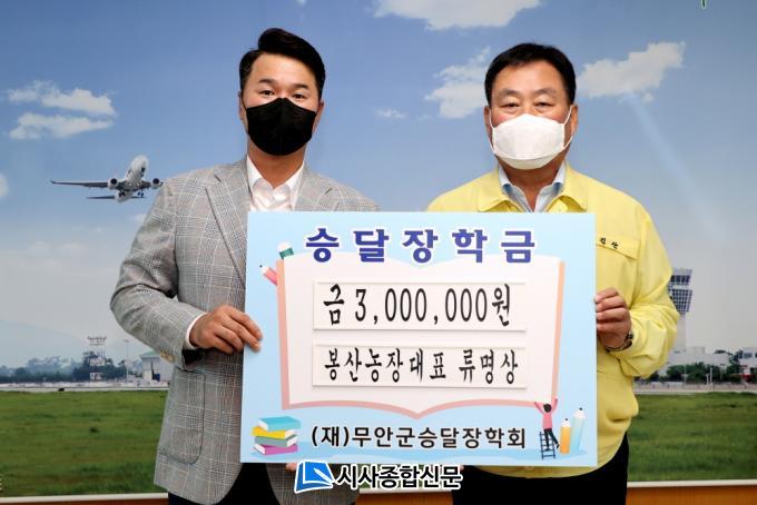 [½Ã»çÁ¾ÇսŹ® = ¿À½ÂÅà ±âÀÚ] ¹«¾È±º(±º¼ö ±è»ê)Àº Áö³ 7ÀÏ ¸ùź¸é¿¡ ¼ÒÀçÇÑ ºÀ»ê³óÀå ·ù¸í»ó ´ëÇ¥°¡ (Àç)¹«¾È±º½Â´ÞÀåÇÐȸ¿¡ ÀåÇÐ±Ý 300¸¸¿øÀ» ±âŹÇß´Ù°í ¹àÇû´Ù.