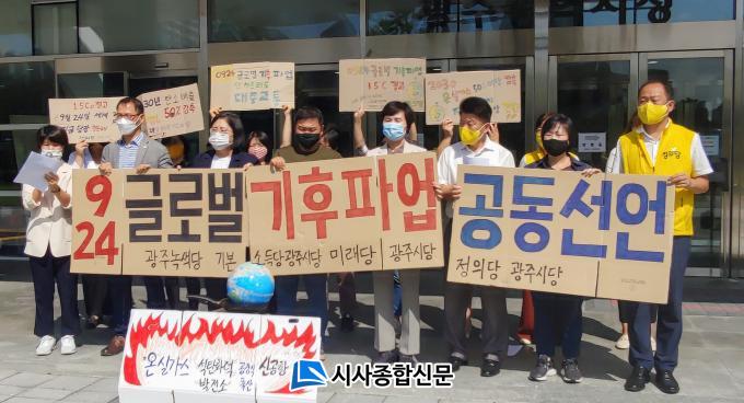 24ÀÏ Á¤ÀÇ´ç ±¤Áֽôç°ú ±¤ÁÖ³ì»ö´ç, ±âº»¼Òµæ´ç ±¤Áֽôç, ¹Ì·¡´ç ±¤ÁֽôçÀº ±¤ÁÖ½Ãû ¾Õ¿¡¼ ¡®9.24 ±âÈÄÁ¤ÀÇ °øµ¿¼±¾ð¹®¡¯À» ¹ßÇ¥Çß´Ù.