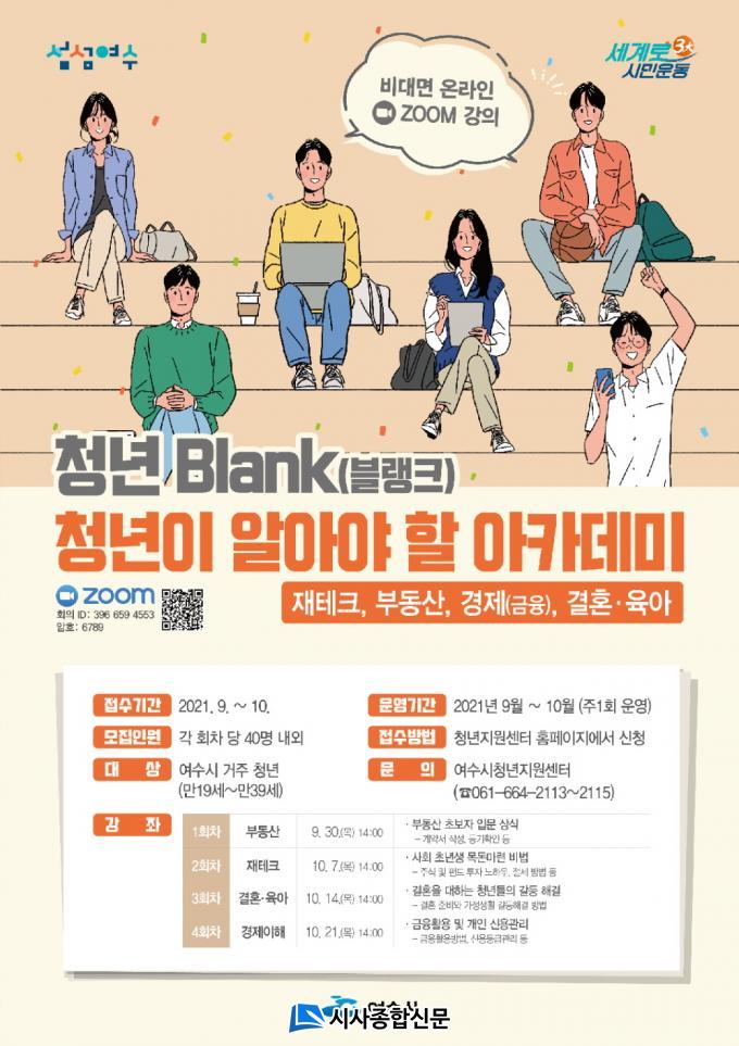 ºí·©Å© ¾ÆÄ«µ¥¹Ì´Â ºñ´ë¸é È»óȸÀÇ ÇÁ·Î±×·¥ÀÎ ÁÜ(ZOOM)À» ÅëÇØ ¹«·á·Î Âü¿©ÇÒ ¼ö ÀÖÀ¸¸ç, Âü¿©¸¦ Èñ¸ÁÇÏ´Â ¿©¼ö½Ã °ÅÁÖ Ã»³âÀº ¿©¼ö½Ãû³âÁö¿ø¼¾ÅÍ È¨ÆäÀÌÁö(https://www.yeosu.go.kr/youthcenter)¿¡¼ ½ÅûÇÏ¸é µÈ´Ù.