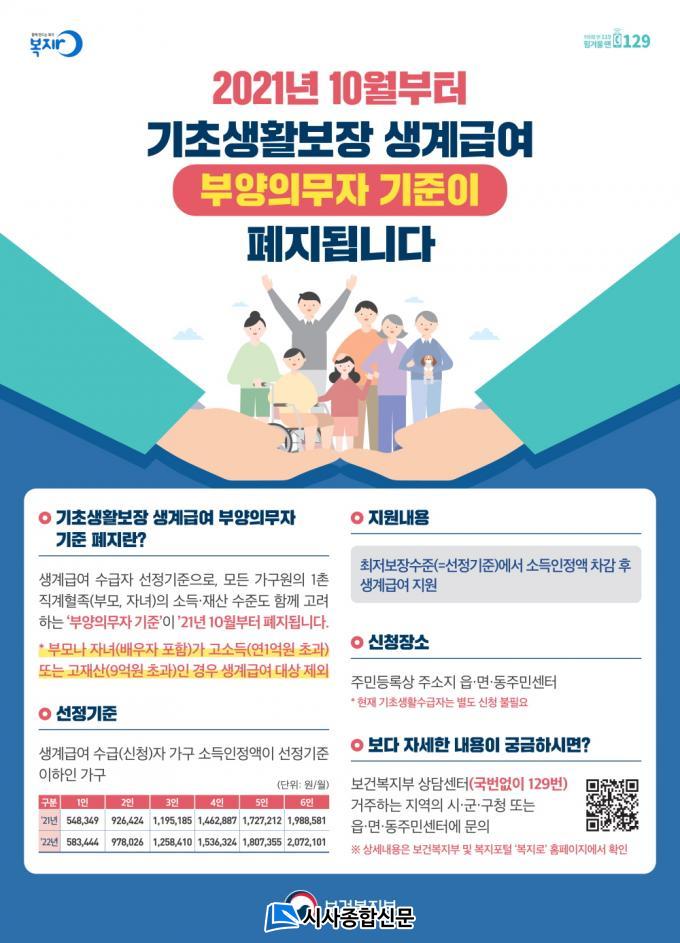 ±âÁ¸¿¡ ¸ðµç °¡±¸¿øÀÇ 1ÃÌ Á÷°èÇ÷Á·(ºÎ¸ð, ÀÚ³à)ÀÇ ¼Òµæ¡¤Àç»ê ¼öÁصµ ÇÔ²² °í·ÁÇß´ø ±âÃÊ»ýȰº¸Àå »ý°è±Þ¿© Áö¿ø´ë»óÀÚÀÇ ¼±Á¤±âÁØÀº ºÎ¾ç¿¡ ´ëÇÑ »çȸÀû ÀÎ½Ä º¯È°¡ ¹Ý¿µµÈ Á¦2Â÷ ±âÃÊ»ýȰº¸Àå Á¾ÇÕ°èȹ(2021~2023³â)¿¡ µû¶ó ´çÃÊ 2022³â ½ÃÇ࿹Á¤À̾úÀ¸³ª ºó°ï»ç°¢Áö´ë ÇØ¼Ò ¹× ±âÁ¸ ¼ö±ÞÀÚ º¸Àå °È¸¦ À§ÇØ ¿À´Â 10¿ùºÎÅÍ Á¶±â ½ÃÇàÇϱâ·Î °áÁ¤Çß´Ù.