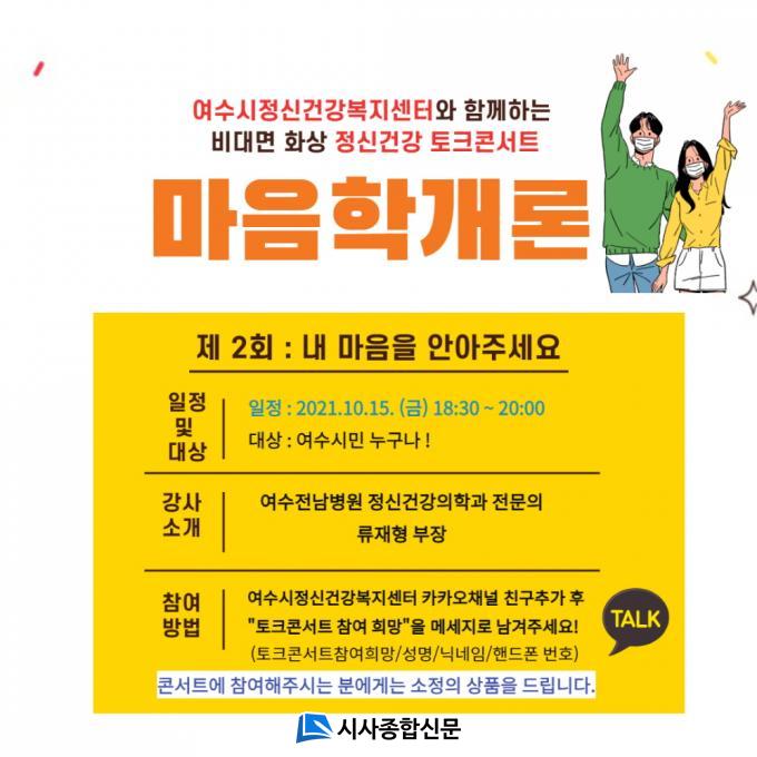À̹ø ÅäÅ©ÄܼƮ´Â ¡°³» ¸¶À½À» ¾È¾ÆÁÖ¼¼¿ä¡±¸¦ ÁÖÁ¦·Î 15ÀÏ 18:30ºÎÅÍ 20:00±îÁö ¿©¼öÀü³²º´¿ø Á¤½Å°Ç°ÀÇÇаú Àü¹®ÀÇ ·ùÀçÇü ºÎÀåÀÌ °»ç·Î ³ª¼ ÁøÇàÇÑ´Ù.
