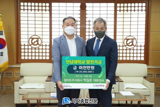¹Ú±æÁØ ´ëÇ¥ÀÌ»ç´Â Áö³ 10¿ù 8ÀÏ Àü³²´ë Á¤¼ºÅà ÃÑÀåÀ» ¿¹¹æÇØ ±âºÎ±ÝÀ» Àü´ÞÇÑ µÚ, Àü³²´ë¿¡ ¿¬±¸°³¹ß ¼¾Å͸¦ µÑ ¼ö ÀÖ¾î °¨»çÇÏ´Ù.¡±ÇÏ´Â ¶æ°ú ÇÔ²² ¡°¾ÕÀ¸·Îµµ Àü³²´ë Çлýµé¿¡°Ô µµ¿òÀÌ µÇ´Â ÁÁÀº ±âȸ¸¦ ¸¸µé¾î°¡°Ú´Ù.¡±°í ¹àÇû´Ù.