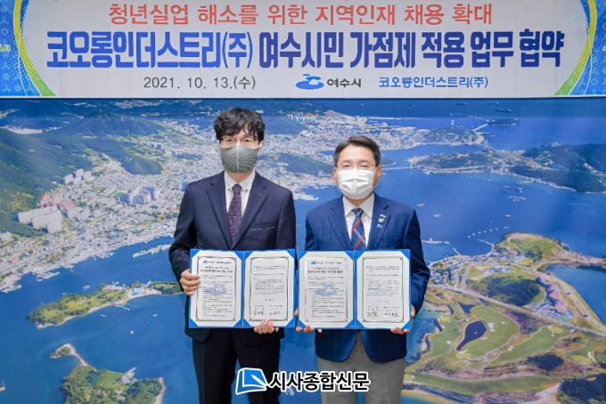 ±Ç¿ÀºÀ ¿©¼ö½ÃÀå°ú °ø¿ø¼® ÄÚ¿À·ÕÀδõ½ºÆ®¸®(ÁÖ) ¿©¼ö°øÀåÀåÀº Çù¾à¼¿¡ ¼¸íÇϸç Áö¿ªÀÎÀç ä¿ë·ü ÁõÁø°ú ´õºÒ¾î Áö¿ª¹ßÀüÀ» À§ÇØ ´õ¿í Çù·ÂÇØ ³ª°¡±â·Î Çß´Ù.
