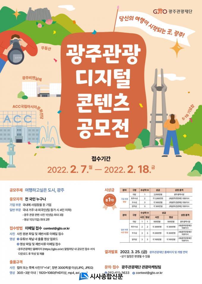 ±¤ÁÖ°ü±¤¿¡ °ü½ÉÀÌ ÀÖ´Â ±¹³» °ÅÁÖ ³»¡¤¿Ü±¹ÀÎ ¹× ±¹³»¿¡ »ç¾÷ÀåÀ» µÐ ±â¾÷ü¶ó¸é ´©±¸³ª Âü¿©ÇÒ ¼ö ÀÖÀ¸¸ç, ¾Æ¸§´Ù¿î ±¤ÁÖÀÇ °ü±¤ÀÚ¿øÀ» È«º¸ÇÒ ¼ö ÀÖ´Â »çÁø¡¤¿µ»óÀ» ÃÔ¿µÇØ Á¢¼ö±â°£ÀÎ ³»³â 2¿ù7ÀϺÎÅÍ 18ÀϱîÁö Á¦ÃâÇÏ¸é µÈ´Ù.