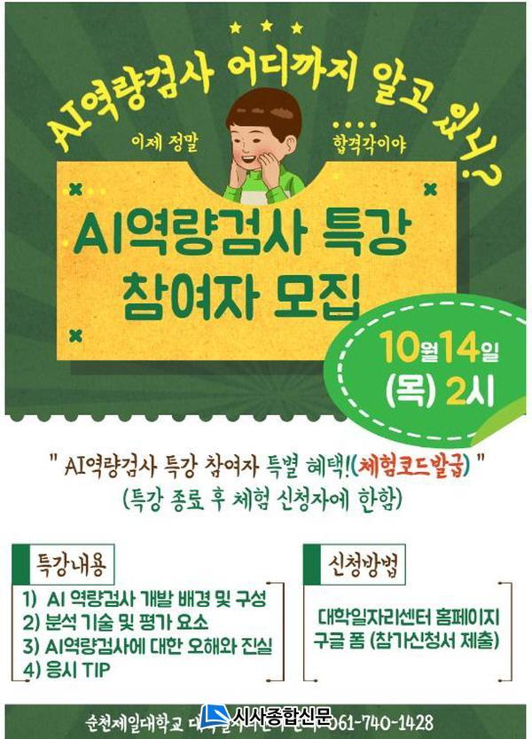 [½Ã»çÁ¾ÇսŹ® = Àå¹Î±Ô ±âÀÚ] ¼øÃµÁ¦ÀÏ´ëÇб³(ÃÑÀå ¼ºµ¿Á¦, Çб³¹ýÀÎ ¼º½ÉÇпø ÀÌ»çÀå ¼º±ÔÁ¦) ´ëÇÐÀÏÀÚ¸®¼¾ÅÍ´Â Áö³ 10¿ù 14ÀÏ(¸ñ), ÀçÇлý ¹× Á¹¾÷»ýµéÀÇ ±¸Á÷½ºÅ³Çâ»ó°ú Ãë¾÷¿ª·® °È¸¦ À§ÇØ ¿Â¶óÀÎ ¹æ½ÄÀ» Ȱ¿ëÇÑ AI¿ª·®°Ë»ç ¾îµð±îÁö ¾Ë°íÀÖ´Ï? Ãë¾÷Ư° ÇÁ·Î±×·¥À» ¿î¿µÇß´Ù.