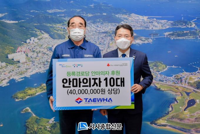 [½Ã»çÁ¾ÇսŹ® = ¿À½ÂÅà ±âÀÚ] (ÁÖ)ÅÂÈ»ê¾÷(ȸÀå ¿À½Â¸¸)ÀÌ 15ÀÏ ¿©¼ö½ÃûÀ» ã¾Æ ¾î¸£½ÅµéÀÇ ÆíÀÇ¿Í °Ç°Áö¿øÀ» À§ÇÑ 4000¸¸ ¿ø »ó´çÀÇ ¾È¸¶ÀÇÀÚ 10´ë ÈÄ¿øÁõ¼¸¦ ±Ç¿ÀºÀ ¿©¼ö½ÃÀå¿¡°Ô Àü´ÞÇß´Ù.
