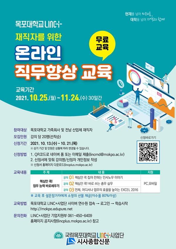 ¡®LINC+ ¿Â¶óÀÎ ±â¾÷ü ÀçÁ÷ÀÚ ±³À°¡¯Àº ¸ñÆ÷´ëÇб³ LINC+»ç¾÷´ÜÀÌ °¡Á·È¸»ç¿Í ICC¸¦ Áß½ÉÀ¸·Î ±â¾÷°ú ÀçÁ÷ÀÚµéÀ» ´ë»óÀ¸·Î ½ÃÇàÇÑ ±³À°¼ö¿äµµ Á¶»ç¿¡ ±â¹ÝÇÏ¿´À¸¸ç, ±³À° ºÐ¾ß·Î´Â ¡ã³ë¹«°ü¸® ¡ã ȸ°è ¹× Ãѹ« ½Ç¹«¡ãOA±âÃÊ(¿¢¼¿)·Î ±¸¼ºµÇ¾ú´Ù.