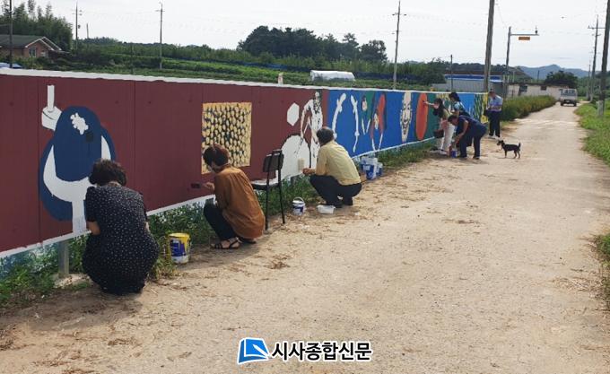 Áö³´ÞºÎÅÍ ¸¶À» ÀÔ±¸ 30m±¸°£¿¡ º®È Åä´ë ¼³Ä¡¿Í ¹ÙÅÁ ¼³Ä¡ µî »çÀü Áغñ¿¡ ±¸½½¶¡À» Èê·Á¿Â ÁֹΠ20¿©¸íÀº º»°ÝÀûÀÎ º®È ÀÛ¾÷À» ÅëÇØ ³ªÁÖ¹è Àç¹è, ¹Ì²Ù¶óÁö Àâ±â, µÎºÎ ¸¸µé±â µî ¸¶À» °³¼º°ú ÁֹεéÀÇ ÀÏ»óÀ» Àͻ콺·´°Ô ´ã¾Æ³½ º®È °Å¸®¸¦ ¿Ï¼ºÇß´Ù.