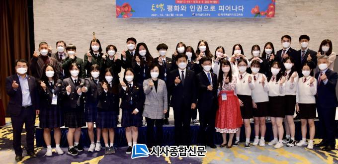 Àü³²±³À°Ã»°ú Á¦ÁÖ±³À°Ã»ÀÌ ÇÔ²² ¸¶·ÃÇÑ À̳¯ Çà»ç¿¡´Â ÇѸ²¿©Áß°ú ¿©¼ö¾È»êÁß, ¼øÃµÆÈ¸¶Áß Çлý°ú Àå¼®¿õ¡¤À̼®¹® ±³À°°¨À» ºñ·ÔÇÑ µÎ ±³À°Ã» °ü°èÀÚ, Á¦ÁÖ4¡¤3 ¹× ¿©¼ö¡¤¼øÃµ10¡¤19 À¯Á·È¸ ´ëÇ¥ µî 50¿© ¸íÀÌ Âü¼®ÇØ ÆòÈ¡¤ÀαÇÀÇ ¼ÒÁßÇÔ¿¡ ´ëÇØ °ø°¨Çß´Ù.