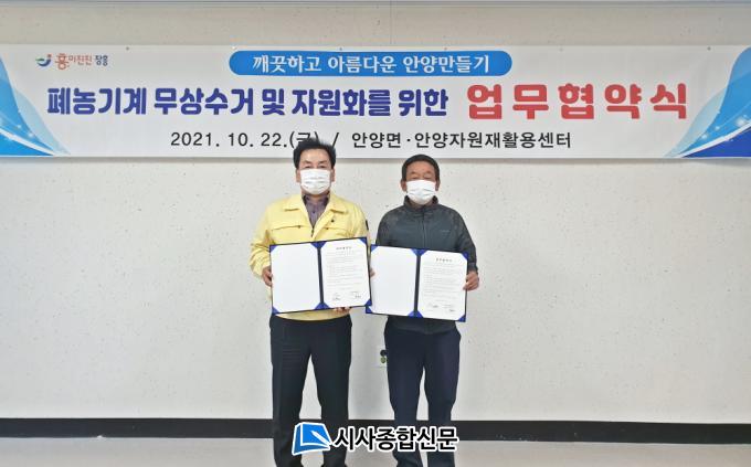 [½Ã»çÁ¾ÇսŹ® = ¿À½ÂÅà ±âÀÚ] ÀåÈﱺ ¾È¾ç¸é ÇàÁ¤º¹Áö¼¾ÅÍ´Â 22ÀÏ ¾È¾çÀÚ¿øÀçȰ¿ë¼¾ÅÍ(¼¾ÅÍÀå ¹Ú¿Ü½Ä)¿Í Æó ³ó±â°è ¹«»ó ¼ö°Å¸¦ À§ÇÑ ¾÷¹« Çù¾àÀ» ü°áÇß´Ù.