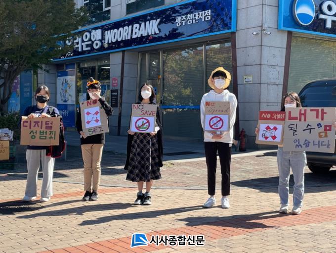 ±¤»ê±¸Ã»¼Ò³â¼º¹®È¼¾ÅÍ¿Í Ã»¼Ò³â¼ºÆòµîÀαǵ¿¾Æ¸® ¡®³ªºñÈ¿°ú¡¯´Â 10¿ù 23ÀÏ ±¤ÁÖ±¤¿ª½Ã ±¤»ê±¸ ÷´Ü 1µ¿ LCŸ¿ö ¾Õ ±¤Àå¿¡¼ µðÁöÅÐ ¼º¹üÁË ¿¹¹æÀ» À§ÇÑ ½Çõ ¾à¼Ó NO 4 ¡°ºÒ¹ý ÃÔ¿µÇÏÁö ¾Ê±â (NO Shoot), ºÒ¹ý ÃÔ¿µ¹° À¯Æ÷ÇÏÁö ¾Ê±â(NO Spread), ºÒ¹ý ÃÔ¿µ¹° ÀúÀåÇÏÁö ¾Ê±â(NO Save), ºÒ¹ý ÃÔ¿µ¹° ½ÃûÇÏÁö ¾Ê±â(NO See)¡±¸¦ Áß½ÉÀ¸·Î ¸®Ç÷¿À» Á¦ÀÛÇÏ¿© Áö¿ªÁֹο¡°Ô ¹èÆ÷ÇÏ¿´´Ù.