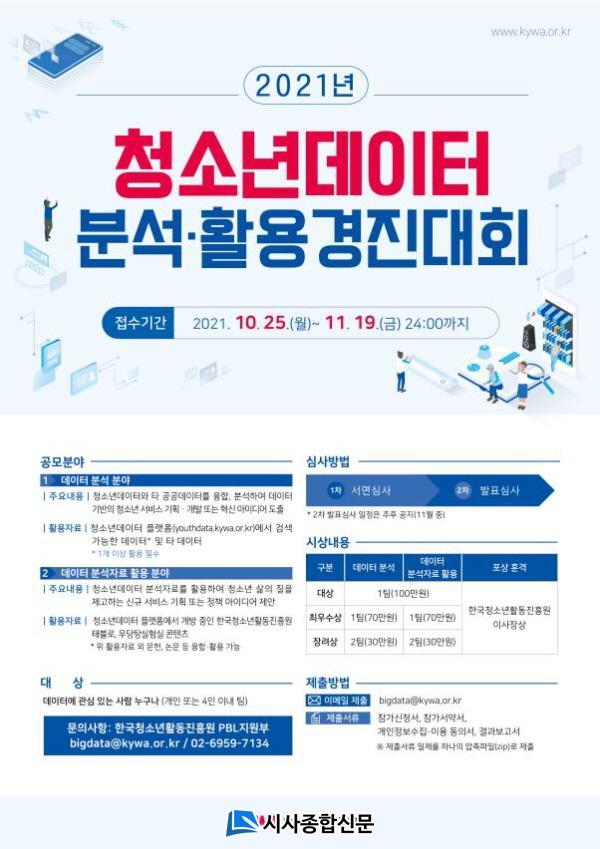 Âü¿©¸¦ ¿øÇÏ´Â »ç¶÷Àº û¼Ò³âµ¥ÀÌÅÍ Ç÷§Æû(youthdata.kywa.or.kr)¿¡¼ Á¦°øµÇ´Â ¼½Ä¿¡ µû¶ó, ¿À´Â 11¿ù 19ÀϱîÁö ¿Â¶óÀÎÀ¸·Î ÀÀ¸ðÇÏ¸é µÈ´Ù. °æÁø´ëȸ¿¡ °üÇÑ ÀÚ¼¼ÇÑ ³»¿ëÀº Çѱ¹Ã»¼Ò³âȰµ¿ÁøÈï¿ø¿¡ ¹®ÀÇÇÏ¿© ¾È³»¹ÞÀ» ¼ö ÀÖ´Ù.