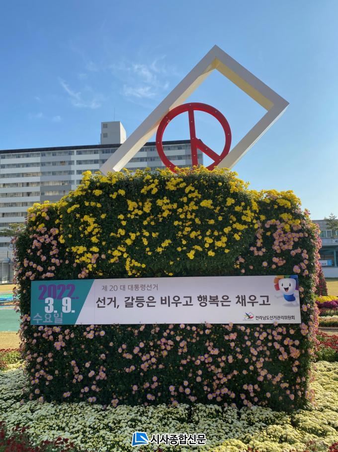[½Ã»çÁ¾ÇսŹ® = ¿À½ÂÅà ±âÀÚ] Àü¶ó³²µµ¼±°Å°ü¸®À§¿øÈ¸°¡ 2022³â ½Ç½ÃÇÏ´Â ¾ç´ë¼±°Å(Á¦20´ë ´ë¼±, Á¦8ȸ Áö¼±) È«º¸¸¦ À§ÇØ È¼ø±º ȼøÀ¾ ±¤´ö¹®È±¤Àå¿¡ ¼³Ä¡ÇÑ ¼±°ÅÁ¶Çü¹°ÀÌ »ç¶÷µéÀÇ ´«±æÀ» »ç·ÎÀâ°í ÀÖ´Ù.