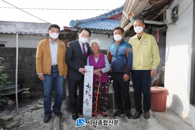 [½Ã»çÁ¾ÇսŹ® = ¿À½ÂÅà ±âÀÚ] ÀåÈﱺÀº Áö³ 2ÀÏ 100¼¼¸¦ ¸ÂÀº ¾î¸£½Å ´ìÀ» ¹æ¹®ÇØ °Ç°°ú Àå¼ö¸¦ »ó¡Çϴ û·ÁÀå(Àå¼öÁöÆÎÀÌ)°ú ´ëÅë·É ÃàÇÏ ¼ÇÑÀ» ÁõÁ¤Çß´Ù.