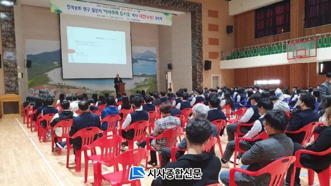 Çлýµé¿¡°Ô ¾Ö±¹½É°ú ¾ÖÇâ½ÉÀ» ±æ·¯ÁÖ±â À§ÇØ ¸¶·ÃÇÑ °¿¬Àº ¾Æ»çÄí¶ó µµ½Ã¿À ÀϺ» ±¹¸³¹ÎÁ·Çйڹ°°ü ¹ÎÁ·»çȸ¿¬±¸ºÎ ±³¼ö¸¦ ÃʺùÇØ ¡®ÇÑÀÏ ¹®È±³·ùÀÇ ±æÀ» ã¾Æ¼¡¯¸¦ ÁÖÁ¦·Î ÀÌ·ïÁ³´Ù.
