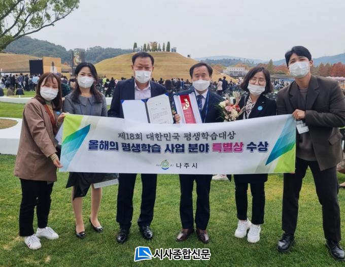 Àü¶ó³²µµ ³ªÁÖ½Ã(½ÃÀå °ÀαÔ)´Â 5ÀÏ ±³À°ºÎ°¡ ÁÖÃÖÇÏ°í ±¹°¡Æò»ý±³À°ÁøÈï¿øÀÌ ÁÖ°üÇÏ´Â ¡®Á¦18ȸ ´ëÇѹα¹ Æò»ýÇнÀ´ë»ó¡¯ ½Ã»ó½Ä¿¡¼ ¡®¿ÃÇØÀÇ Æò»ýÇнÀ »ç¾÷ºÎ¹®¡¯ Ưº°»óÀ» ¼ö»óÇß´Ù°í ¹àÇû´Ù.