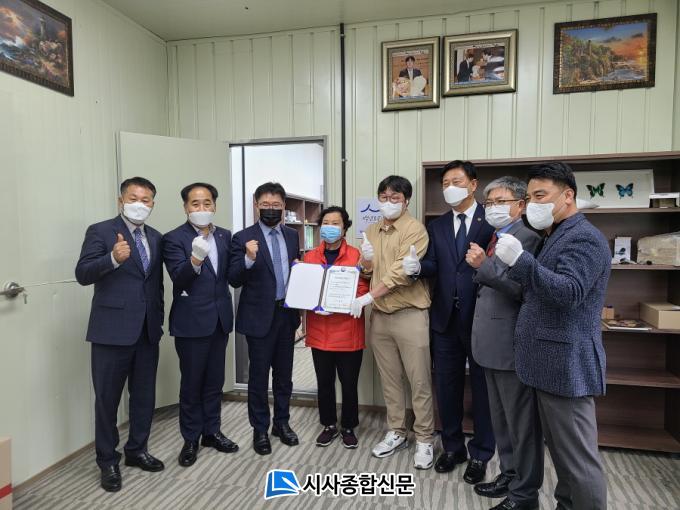 ÇöÆÇ½Ä Çà»ç¿¡´Â ±¤ÁÖ¡¤Àü³²Áß±âû Àå´ë±³ ûÀåÀ» ºñ·ÔÇÏ¿© ¼Ò»ó°øÀνÃÀåÁøÈï°ø´Ü ÀÌÁ¤¿í±¤ÁÖÈ£³²Áö¿ªº»ºÎÀå, ±¤ÁÖÀü³² »óÀο¬ÇÕȸȸÀå µî 5°³ ±â°üÀÌ Âü¼®ÇÏ¿© ¹é³â°¡°Ô¡¤¹é³â¼Ò°øÀÎ ÇöÆÇ Á¦¸·½Ä°ú ÀÎÁõ È®Àμ¸¦ Àü´ÞÇß´Ù.