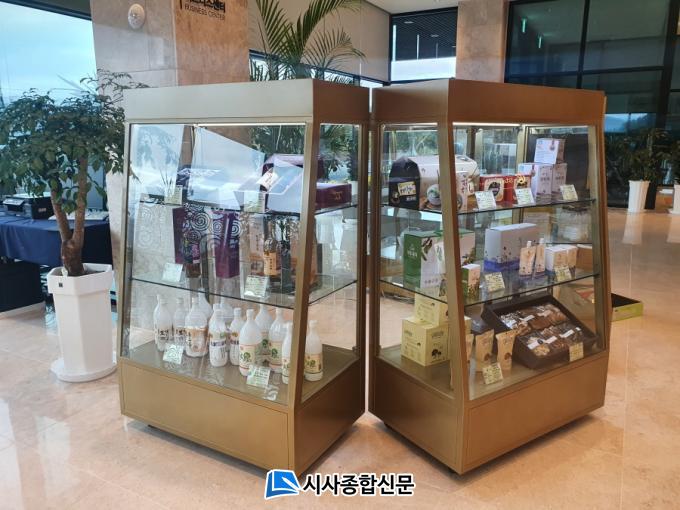 Àü½ÃÀåÀº È£ÅÚ 1Ãþ ·Îºñ ³»ºÎ¿¡ ÀÖÀ¸¸ç, À¯±â³ó½Ò, ½Ò±Í¸®, Àâ°î µî ³ó»ê¹°°ú ¸ñÀ̹ö¼¸, ½Ò±Í¸® ºÐ¸», ½º¹«µð¹Ð, ÀÛµÎÄáÂ÷ µî °¡°ø½Äǰ ¹× Â÷·ù, ±×¸®°í ÅäÇÏÁ£, ¸Å»ýÀÌ µî ¼ö»ê¹° µî °Áø±º ´ëÇ¥ ³ó¼öƯ»ê¹° ¾à 24°³ ǰ¸ñÀ» Àü½Ã¡¤ÆÇ¸ÅÇÑ´Ù.