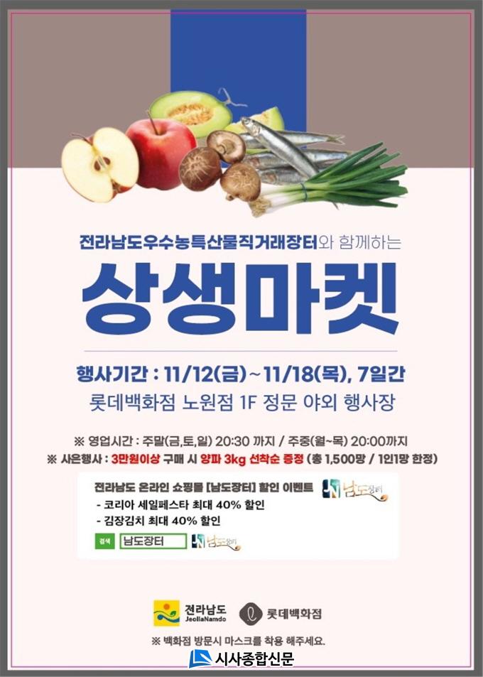 À̹ۿ¡ Àü³²µµ´Â Á÷Á¢ ¿î¿µÇÏ´Â ¿Â¶óÀμîÇθô ¡®³²µµÀåÅÍ(jnmall.kr)¡¯¿¡¼ °íǰÁú Àü³² ³ó¼öƯ»ê¹°ÀÇ ´ë´ëÀû ¼Òºñ ÃËÁøÀ» À§ÇÑ ÆÇÃËÇà»ç¸¦ ÆîÄ¡°í ÀÖ´Ù.
