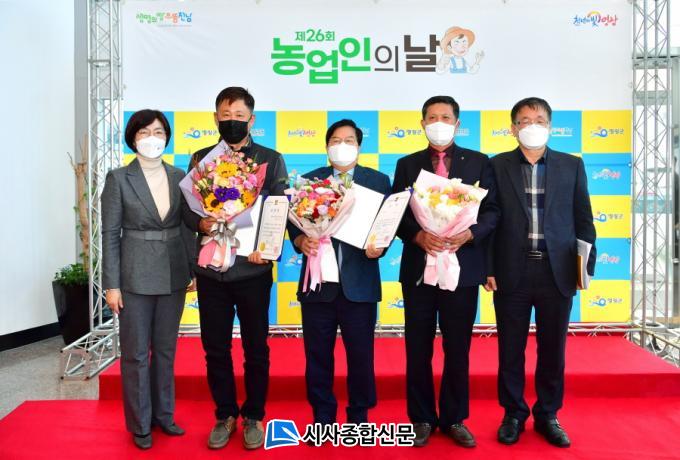 ÇÑÆí, À̳¯ ³ó¾÷ÀÎÀÇ ³¯ ±â³ä½Ä¿¡¼ À̽° Çѱ¹»õ³ó¹ÎÁß¾Óȸ¿øÀÌ ³óÁ¤¹ßÀüÀ¯°ø µµÁö»çǥâÀ» ¼ö»óÇÏ´Â ¿µ±¤À» ¾È¾Ò´Ù.