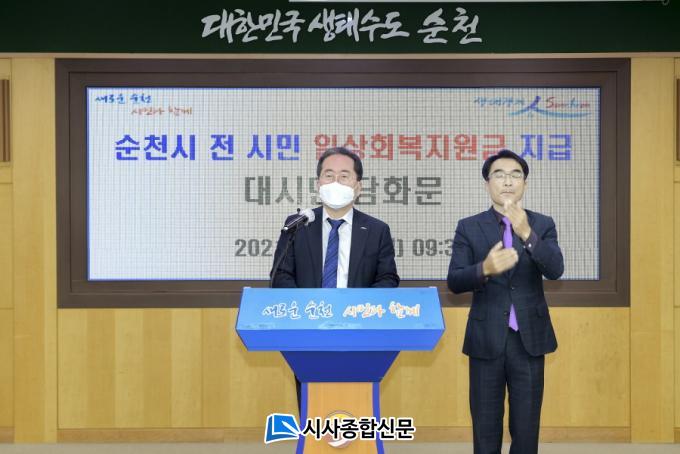 ¼øÃµ½Ã´Â 11¿ù 12ÀÏ ±âÁØ ¼øÃµ½Ã¿¡ ÁÖ¼Ò¸¦ µÐ ¸ðµç ½Ã¹Î°ú ¿Ü±¹Àεî·ÏÀÌ µÇ¾î ÀÖ´Â »ç¶÷À» ´ë»óÀ¸·Î, 12¿ù Áß 1Àδç 10¸¸¿øÀÇ ÀÏ»óȸº¹Áö¿ø±ÝÀ» ¼øÃµ»ç¶û»óǰ±ÇÀ¸·Î Áö±ÞÇÑ´Ù. ÃÑ ¼Ò¿ä¾×Àº ¾à 290¾ï¿øÀ¸·Î, °¢Á¾ Çà»ç¿Í ÃàÁ¦ µîÀÇ ¿¹»êÀý°¨°ú ±³ºÎ¼¼ È®º¸ µîÀ» ÅëÇØ ¸¶·ÃÇß´Ù°í ¹àÇû´Ù.
