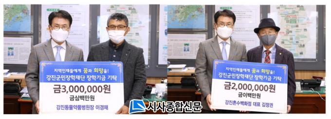 ¡Ø »çÁø¼³¸í : À̰æÀç ¿øÀå°ú ±èÁ¤±Ç ´ëÇ¥ÀÌ °Áø±º¹ÎÀåÇÐÀç´Ü À̽¿Á ÀÌ»çÀå¿¡°Ô ÀåÇбÝÀ» Àü´ÞÇϰí ÀÖ´Ù.