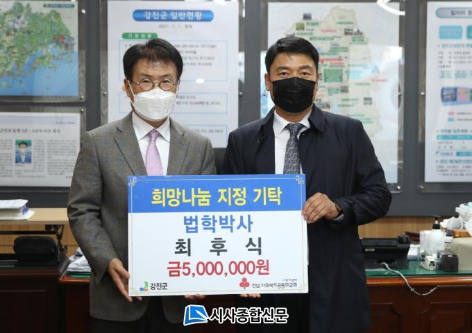 | Áö³ 12ÀÏ ÃÖÈÄ½Ä ¹ýÇйڻ簡 ÀÌ¿ôµ½±â ¼º±ÝÀ¸·Î °Áø±º¿¡ 500¸¸ ¿øÀ» ±âŹÇß´Ù.