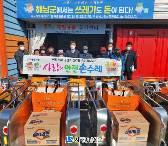 [½Ã»çÁ¾ÇսŹ® = °À±¿À ±âÀÚ] ÇØ³²±ºÀº ÆóÁö µî ÀçȰ¿ëǰ ¼ö°Å·Î »ý°è¸¦ À¯ÁöÇÏ´Â °ü³» ¾î¸£½Å 24¸í¿¡°Ô¡®¾ÈÀü¼Õ¼ö·¹ ¹× ¾ÈÀüÀåºñ¡¯¸¦ º¸±ÞÇß´Ù.