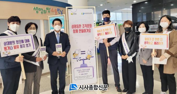 ±èÁ¾ºÐ Àü³²µµ ¿©¼º°¡Á·Á¤Ã¥°üÀº ¡°Á÷Àå ³» ¼ºÆòµîÇÑ Á¶Á÷¹®È¸¦ Á¤ÂøÇϱâ À§Çؼ´Â ¸ðµç Á÷¿øÀÌ ÇÔ²² ³ë·ÂÇÒ Çʿ䰡 ÀÖ´Ù¡±¸ç ¡°Á÷Àå³» ¼ºÀÎÁö °¨¼ö¼ºÀ» ³ôÀ̰í, ÆòµîÇÑ °øÁ÷¹®È°¡ Á¤ÂøµÇµµ·Ï ±³À°°ú È«º¸¸¦ Áö¼ÓÇϰڴ١±°í ¸»Çß´Ù.