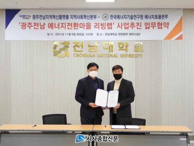 ±¤ÁÖÀü³²Áö¿ªÇõ½ÅÇ÷§Æû Áö¿ª»çȸÇõ½Åº»ºÎ(º»ºÎÀå ³ªÁÖ¸ù)´Â Áö³ 11¿ù 9ÀÏ Àü³²´ëÇб³ º»ºÎ¿¡¼ Çѱ¹¿¡³ÊÁö±â¼ú¿¬±¸¿ø ¿¡³ÊÁöÈ¿À²¿¬±¸º»ºÎ¿Í ±¤ÁÖÀü³² ¿¡³ÊÁöÀüȯ¸¶À» ¸®ºù·¦ »ç¾÷ ÃßÁøÀ» À§ÇÑ ¾÷¹«Çù¾àÀ» ü°áÇß´Ù.