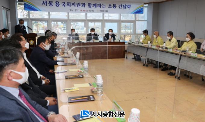 ±¸·Ê±ºÀÇȸ 2Ãþ ȸÀǽǿ¡¼ ¿¸° ¼ÒÅë °£´ãȸ´Â ±¹È¸ÀÇ¿ø½Ç°úÀÇ À¯±âÀûÀÎ ÇùÁ¶Ã¼Á¦ À¯Áö¸¦ À§ÇØ Àλ縦 ³ª´©°í Á¤Ã¥¿¡ ´ëÇÑ ÀǰßÀ» ±³È¯ÇÏ´Â ÀÚ¸®¿´´Ù. 1991³â ±¸·Ê±ºÀÇȸ °³¿ø ÀÌ·¡, Áö¿ª±¸ ±¹È¸ÀÇ¿øÀÌ ±¹È¸ÀÇ¿ø½Ç Á÷¿ø°ú ÇÔ²² ±¸·Ê±ºÀÇȸ¸¦ ¹æ¹®ÇÏ¿© °£´ãȸ¸¦ °¡Áø °ÍÀº óÀ½ÀÌ´Ù.