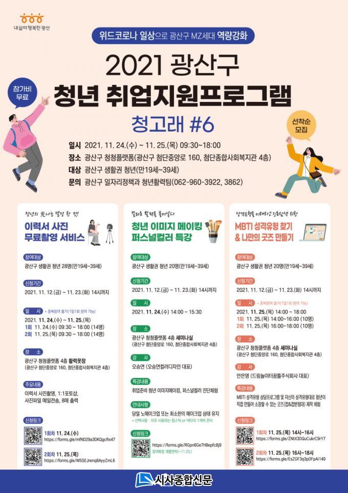 À̹ø û°í·¡ ÇÁ·Î±×·¥Àº Ãë¾÷À» ÁغñÇÏ´Â ±¤»ê±¸ û³â(¸¸19¼¼~39¼¼) ´ë»óÀ¸·Î À̷¼ »çÁø ÃÔ¿µ ¼ºñ½º, ÆÛ½º³ÎÄ÷¯, MBTI(¼º°ÝÀ¯ÇüÁöÇ¥ °Ë»ç) ÁÖÁ¦·Î ¿î¿µµÈ´Ù.