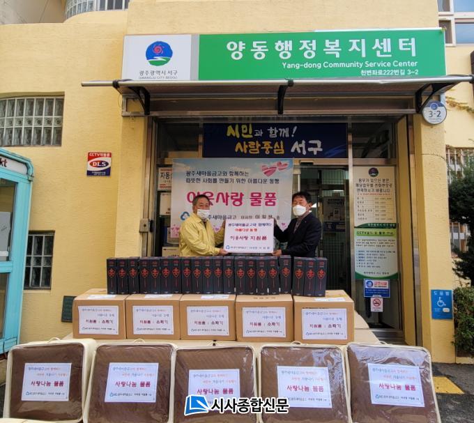 [½Ã»çÁ¾ÇսŹ® = ¿À½ÂÅà ±âÀÚ] ±¤Áֽà ¼±¸ ¾çµ¿ÇàÁ¤º¹Áö¼¾ÅÍ(µ¿Àå ±è¿µ¼ö)¿Í ±¤ÁÖ»õ¸¶À»±Ý°í(ÀÌ»çÀå ÀÌÀϺÀ)°¡ °Ü¿ïö Àú¼ÒµæÃþ Áֹο¡°Ô ³¹æ¿ëǰÀ» Áö¿øÇϱâ À§ÇØ ¶æÀ» ¸ð¾Ò´Ù.