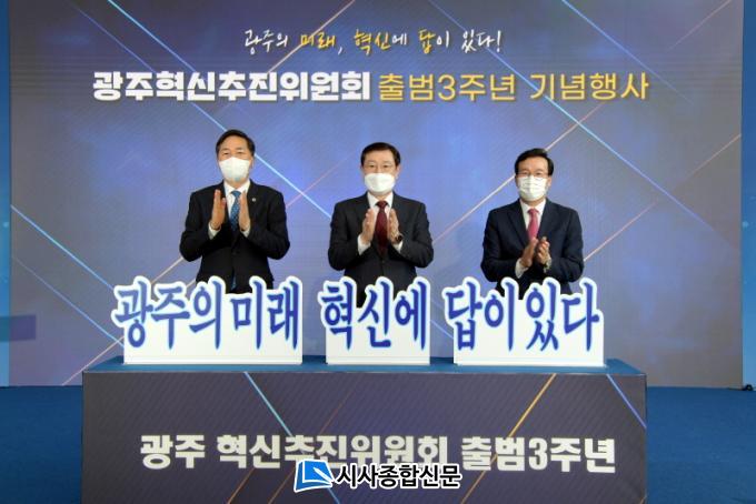 ¡®±¤ÁÖ ¹Ì·¡, Çõ½Å¿¡ ´äÀÌ ÀÖ´Ù¡¯¶ó´Â ½½·Î°ÇÀ¸·Î ÁøÇàµÈ À̳¯ ±â³äÇà»ç´Â ½Ã¹Î»çȸ´Üü °ü°èÀÚ µî °¢°è ½Ã¹Î°ú À̿뼷 ½ÃÀå, ±è¿ëÁý ½ÃÀÇȸ ÀÇÀå, Àӹ̶õ ½ÃÀÇ¿ø, Çõ½ÅÃßÁøÀ§¿øÈ¸ À§¿ø, °ü°è°ø¹«¿ø µîÀÌ Âü¼®ÇØ Çõ½ÅÃßÁøÀ§°¡ ±Ç°í‧Á¦¾ÈÇÑ ´ëÇ¥Àû ½ÃÁ¤Çõ½Å ÁÖ¿ä ¼º°ú¸¦ ½Ã¹Î°ú °øÀ¯Çϰí, ¡®±¤ÁÖÀÇ »õ·Î¿î µµ¾àÀ» À§ÇÑ ¹Ì·¡Çõ½Å¾È(ÀÌÇÏ ¡°¹Ì·¡Çõ½Å¾È¡±)¡¯À» ¹ßÇ¥Çß´Ù.