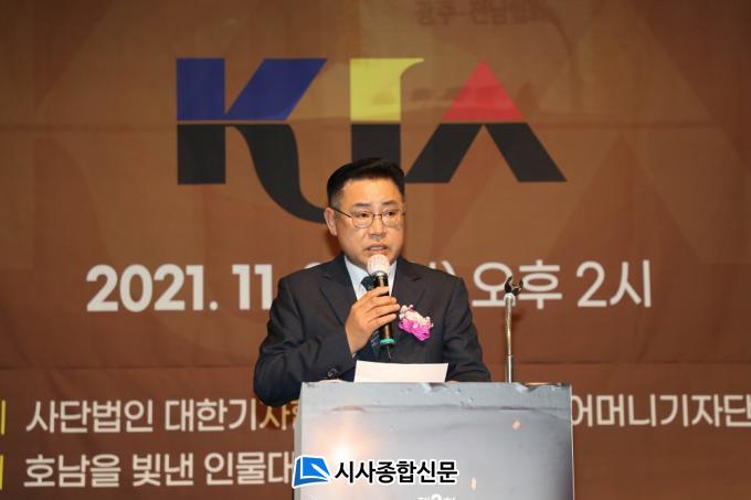 | ¡ã(»ç)´ëÇѱâÀÚÇùȸ ±¤ÁÖÀü³²Çùȸ°¡ ÁÖÃÖÇÑ 2021³â ¡®Á¦3ȸ È£³²À» ºû³½ Àι°´ë»ó¡¯ ½Ã»ó½Ä¿¡¼ Á¤½ÂÇö ÇùȸÀåÀÌ ´ëȸ»ç¸¦ Çϰí ÀÖ´Ù. |