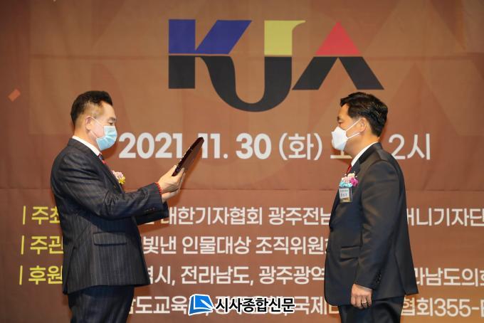 [½Ã»çÁ¾ÇսŹ® = ¿À½ÂÅà ±âÀÚ] ¹®»óÁØ Çì·²µå½Å¹® º»ºÎÀåÀÌ Áö³ 11¿ù 30ÀÏ ±¤ÁÖ ¼±¸ SŸ¿ö¿þµùÄ˺¥¼Ç 5Ãþ ¿¬È¸Àå¿¡¼ ¿¸° »ç´Ü¹ýÀÎ ´ëÇѱâÀÚÇùȸ ±¤ÁÖ¡¤Àü³²Çùȸ(ȸÀå Á¤½ÂÇö)¿Í ¾î¸Ó´Ï±âÀÚ´Ü(´ÜÀå ÃÖÇö¼÷)ÀÌ °øµ¿ ÁÖÃÖÇÑ ¡®2021³â Á¦3ȸ È£³²À» ºû³½ Àι°´ë»ó¡¯ ½Ã»ó½Ä¿¡¼ ¾ð·ÐºÎºÐ ¡®2021 ¿ÃÇØÀÇ ±âÀÚ»ó¡¯À» ¼ö»óÇß´Ù.