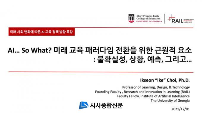 Äڷγª19 »óȲ ¶§¹®¿¡ ÇöÀå Âü¿© ÀοøÀ» ÃÖ¼ÒÈÇÑ °¡¿îµ¥ ´ë¸é¡¤ºñ´ë¸é È¥ÇÕ ¹æ½ÄÀ¸·Î ¿¸° À̳¯ ±³À°Àº ¹Ì±¹ Á¶Áö¾Æ´ëÇб³ ÃÖÀͼ± ±³¼ö¸¦ ÃʺùÇØ ¡®AI... So What? ¹Ì·¡ ±³À° ÆÐ·¯´ÙÀÓ ÀüȯÀ» À§ÇÑ ±Ù¿øÀû ¿ä¼Ò: ºÒÈ®½Ç¼º, »óȲ, ¿¹Ãø, ±×¸®°í... ¡¯¶ó´Â ÁÖÁ¦·Î ÁøÇàµÆ´Ù.