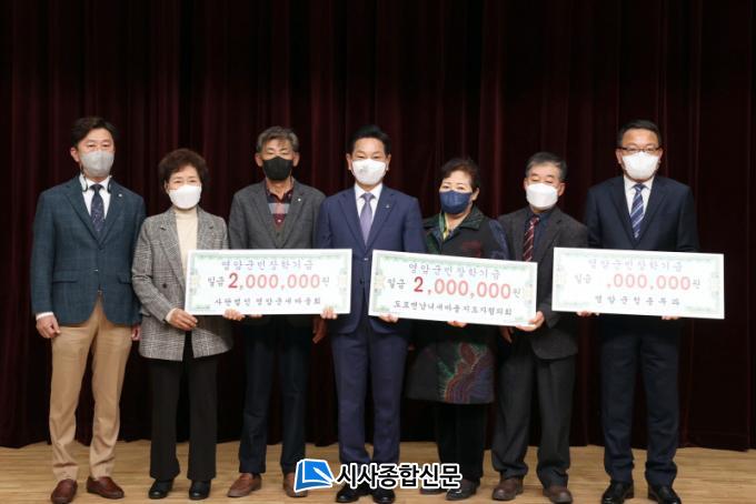 ƯÈ÷, À̹ø ÀåÇÐ±Ý ±âŹ½Ä¿¡ Âü¼®ÇÑ (»ç)¿µ¾Ï±º»õ¸¶À»È¸¿Í µµÆ÷¸é ³²³à»õ¸¶À»ÁöµµÀÚÇùÀÇȸ¿¡¼´Â ÀçȰ¿ëǰ ¿µ³ó¾²·¹±â¸¦ ¼ö°Å¡¤ÆÇ¸Å¸¦ ÅëÇØ ¾òÀº ¼öÀͱÝÀ¸·Î °¢°¢ 200¸¸¿ø¾¿À» ÀåÇбÝÀ¸·Î ÄèôÇÏ¿´°í, ¿µ¾Ï±ºÃ» Ãѹ«°ú´Â 2021³âµµ ´ë±Ô¸ð Åë°èÁ¶»ç ¾÷¹«¿ì¼ö±â°ü ǥâ¿¡ µû¸¥ Æ÷»ó±Ý 100¸¸¿øÀ» Áö¿ªÀÎÀç À°¼ºÀ» À§ÇØ ÀåÇбÝÀ» ±âŹÇÏ¿´´Ù.