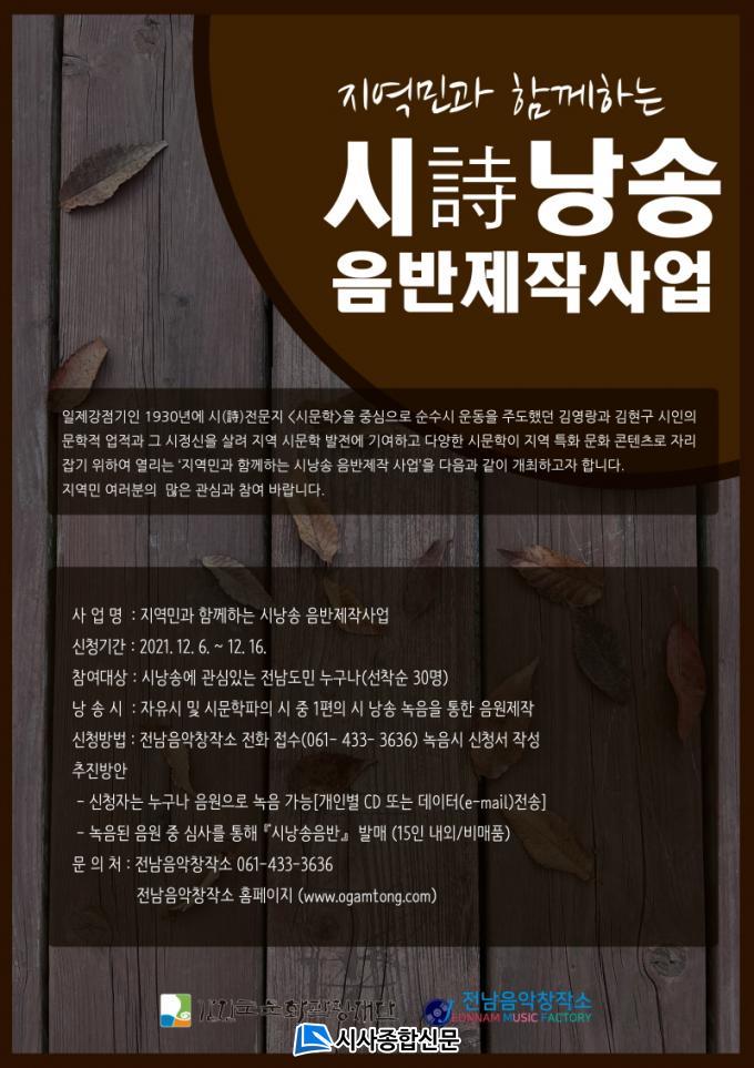 »ç¾÷ Âü¿©Àڵ鿡°Ô´Â Á÷Á¢ ³¶¼ÛÇÑ ½Ã¸¦ ³ìÀ½ÇØ ¼ÒÀåÇÒ ¼ö ÀÖ´Â ±âȸ¸¦ Á¦°øÇϸç ÀÛǰ Áß ¿ì¼ö ³¶µ¶ À½¿øÀ» ¼±Á¤ÇØ ÆíÁý À½¹Ý¿¡ ½Æ´Â´Ù. ½Ã³¶¼Û¿¡ °ü½ÉÀÖ´Â Áö¿ª¹Î ¶Ç´Â Àü³²µµ¹ÎÀÌ¸é ´©±¸³ª Âü¿© °¡´ÉÇÏ¸ç ¿À´Â 16ÀϱîÁö ¼±Âø¼ø 30¸í¸¸ ÀüÈ·Î Á¢¼ö ¹Þ´Â´Ù.