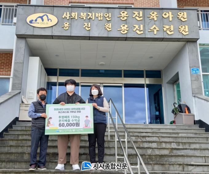 [½Ã»çÁ¾ÇսŹ® = ¿À½ÂÅà ±âÀÚ] ±¤»ê±¸ÀÚ¿øºÀ»ç¼¾ÅÍ(ÀÌ»çÀå ±èº¸°ï) ¹Ì·¡¼¼´ë V¸®´õ ´ëÇлý ºÀ»ç´Ü ¾î½º¾î½ºÆÀÀº Áö³ 9ÀÏ ±¤»ê±¸ ÀӰ¿¡ À§Ä¡ÇÑ ¿ëÁøÀ°¾Æ¿ø¿¡ Çö±Ý 6¸¸¿øÀ» ±âºÎÇß´Ù.