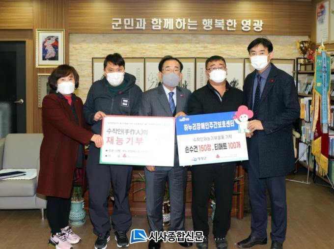 [½Ã»çÁ¾ÇսŹ® = ¿À½ÂÅà ±âÀÚ] ¿µ±¤ÇÏ´©¸® Àå¾ÖÀÎÁÖ°£º¸È£¼¾ÅÍ(¼¾ÅÍÀå ÃÖ¼º¼÷)¿Í »ç)Àü³²ÁöÀûÀå¾ÖÀκ¹ÁöÇùȸ ¿µ±¤±ºÁöºÎ(ÁöºÎÀå ³²±Ã°æ¹®)´Â Áö³ 10ÀÏ Á÷Á¢ ¸¸µç Á¦ÀÛ¹°Ç°ÀÎ ¼Õ¼ö°Ç 150Àå, Ƽ¸ÅÆ® 100°³¸¦ ¿µ±¤±º¿¡ ±âŹÇÏ¿´´Ù.