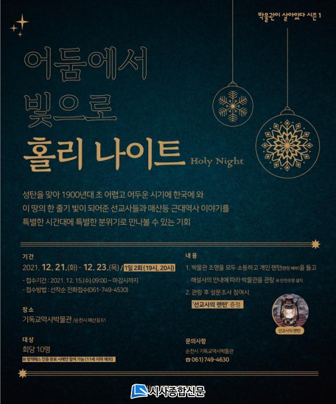 12¿ù 21ÀϺÎÅÍ 23ÀϱîÁö ¸ÅÀÏ Àú³á 7½Ã¿Í 8½Ã °¢ 2ȸ°¡ ¿î¿µµÇ¸ç, ȸ´ç Âü¿©ÀοøÀº 10¸íÀÌ´Ù. Âü°¡ ½ÅûÀº 15ÀϺÎÅÍ ¼±Âø¼ø ÀüÈ Á¢¼ö¸¦ ÅëÇØ °¡´ÉÇÏ¸ç ½ÅûÀÚ ¸ðµÎ ¹æ¿ªÆÐ½º ÀÎÁõÀ» ¿Ï·áÇØ¾ß °ü¶÷ÀÌ °¡´ÉÇÏ´Ù(11¼¼ ¹Ì¸¸ ¿¹¿Ü). °ü¶÷ ÈÄ ¼³¹®Á¶»ç¿¡ Âü¿©ÇÒ °æ¿ì ¡®¼±±³»çÀÇ ·£ÅÏ¡¯À» ±â³äǰÀ¸·Î ÁõÁ¤ÇÑ´Ù.