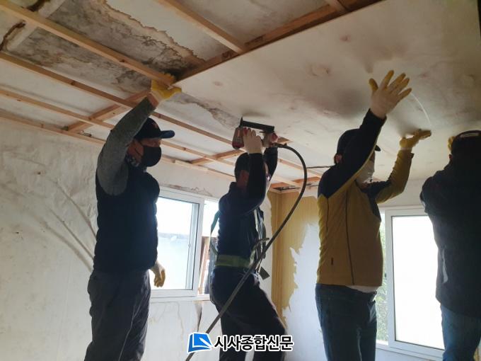 ºÀ»çȰµ¿¿¡ Âü¼®ÇÑ È¸¿ø 50¿©¸íÀº ¼Ò¿Ü°èÃþ ÁýÀ» ¹æ¹®ÇØ Æ÷Å©·¹ÀÎ 1´ë¿Í ȹ°Â÷ 3´ë Àåºñ¸¦ µ¿¿ø, ÁöºØº¸¼ö¿Í µµ¹è¡¤ÀåÆÇ ±³Ã¼¸¦ ºñ·Ô ½ÌÅ©´ë, Á¤ÈÁ¶ Áº¯±â µîÀ» ¼³Ä¡Çß´Ù.