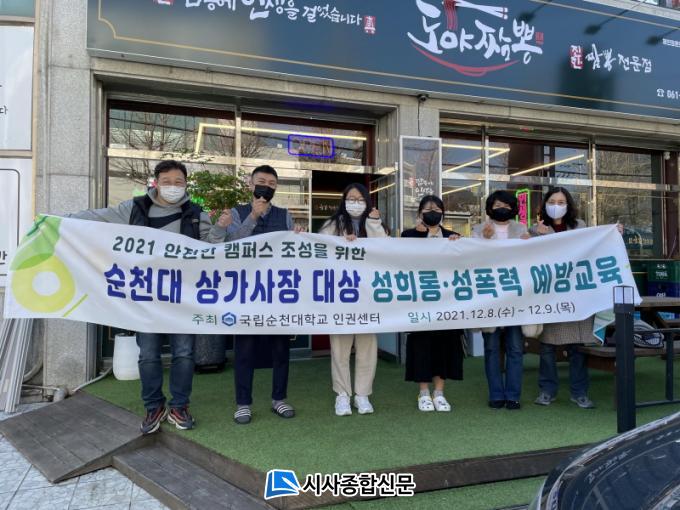 ¼øÃµ´ë ÀαǼ¾ÅÍ´Â Äڷγª19 ¿¹¹æÀ» À§ÇØ »ó°¡¸¦ Á÷Á¢ ¹æ¹®ÇÏ´Â ¼Ò±Ô¸ð ´ë¸é ±³À°À» ÅëÇØ ´ëÇа¡¿¡¼ ¹ß»ýÇÒ ¼ö ÀÖ´Â ¼ºÈñ·Õ¡¤¼ºÆø·Â ¿¹¹æ »ç·Ê¿Í ´ëÀÀ¹ý µîÀ» ¾È³»Çϰí, ±³À°À» À̼öÇÑ ´ëÇ¥µé¿¡°Ô À̼öÁõÀ» ¹ß±ÞÇÏ¿´´Ù.